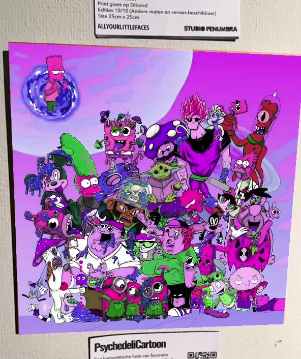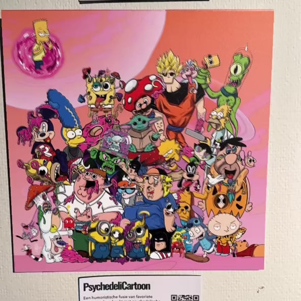 A humorous fusion of beloved childhood cartoons, infused with psychedelic influences. Each character, familiar and nostalgic, has been reimagined with a surreal twist.