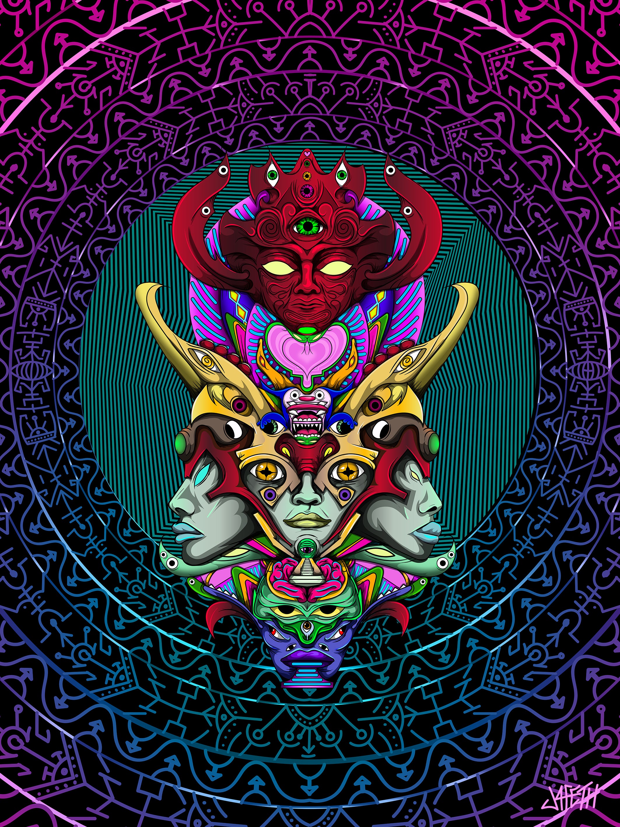A humorous fusion of beloved childhood cartoons, infused with psychedelic influences. Each character, familiar and nostalgic, has been reimagined with a surreal twist.