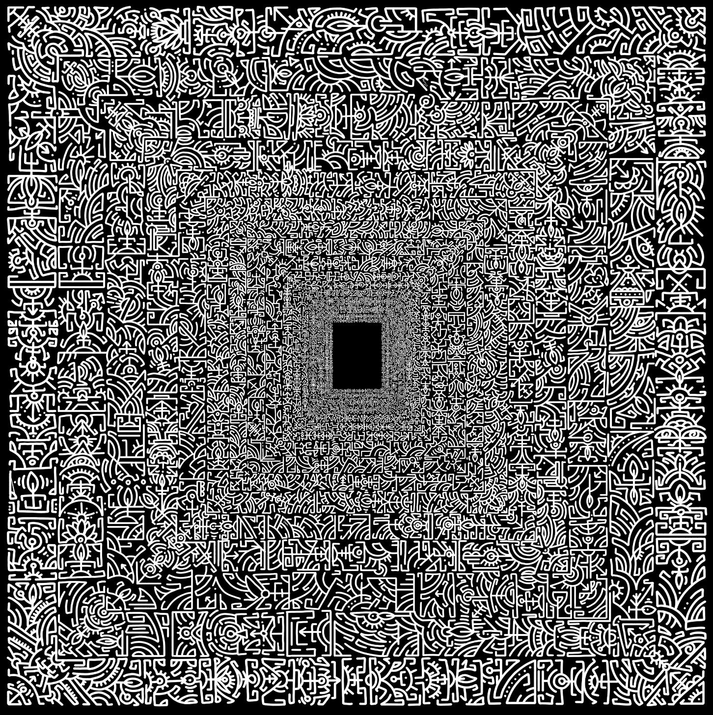 With Augmented Reality, the piece comes to life adding geometric shapes (energy)
